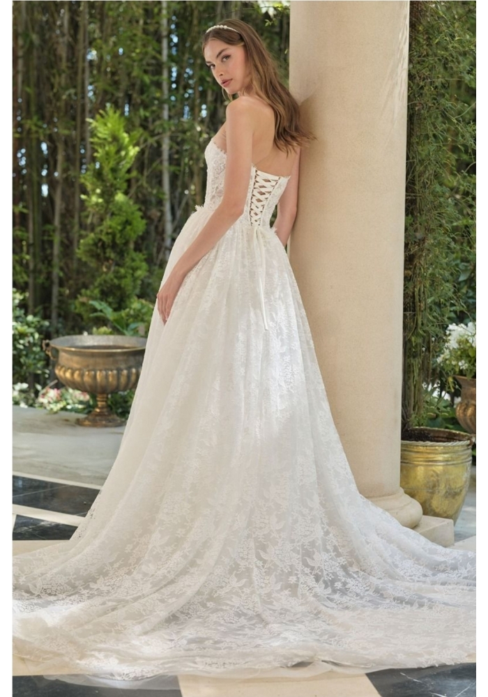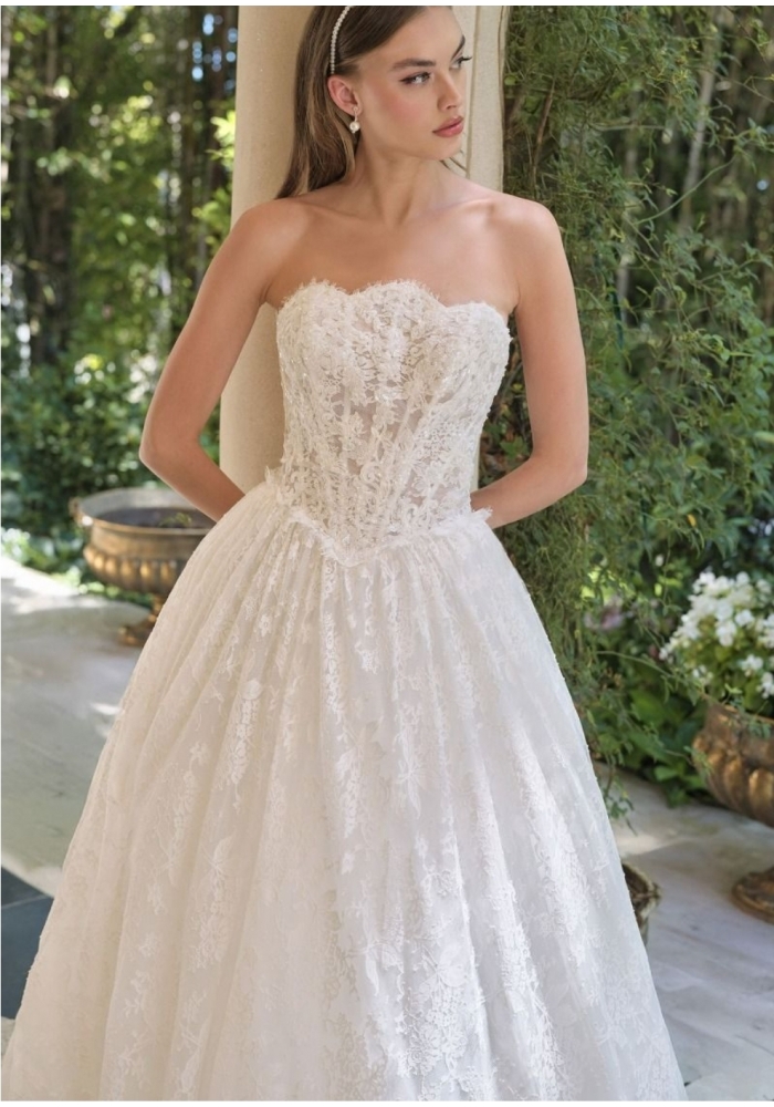 Elegant Nude Stropløs brudekjole med corsage.