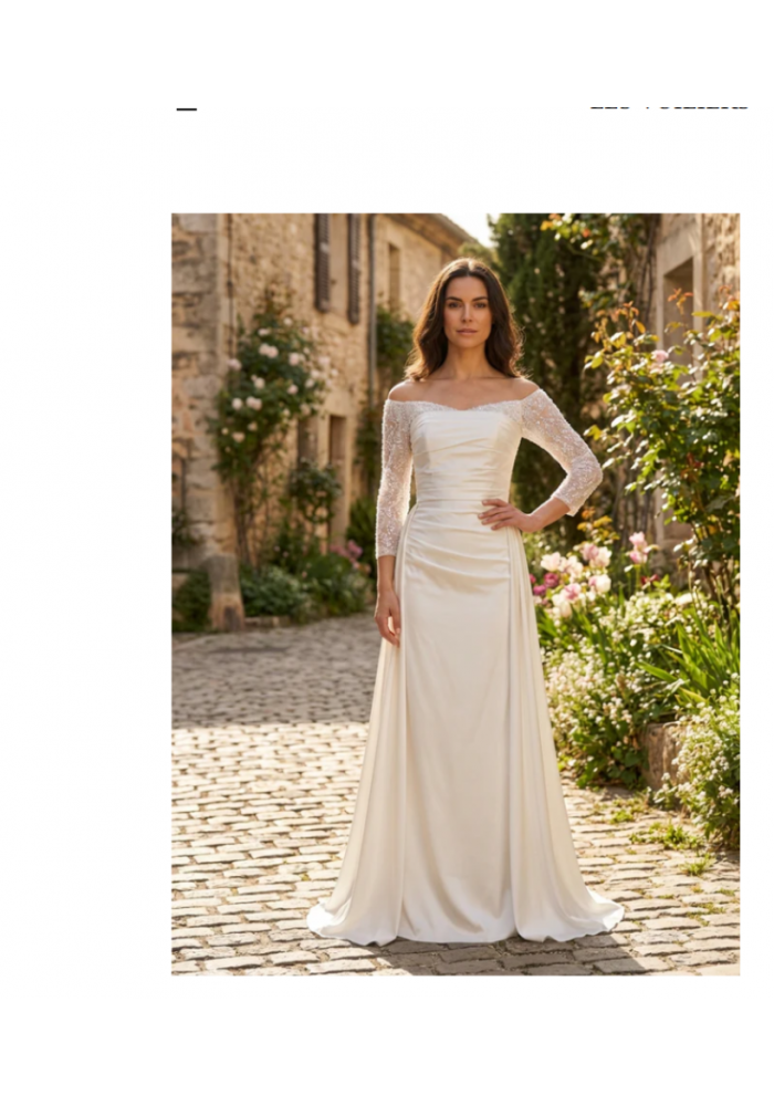 2026 brudekjole med ærmer og slå om skørt