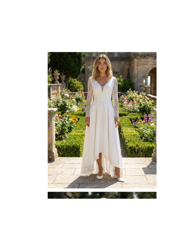 Elegant ivory farvet brudekjole kortere foran længere bag på.